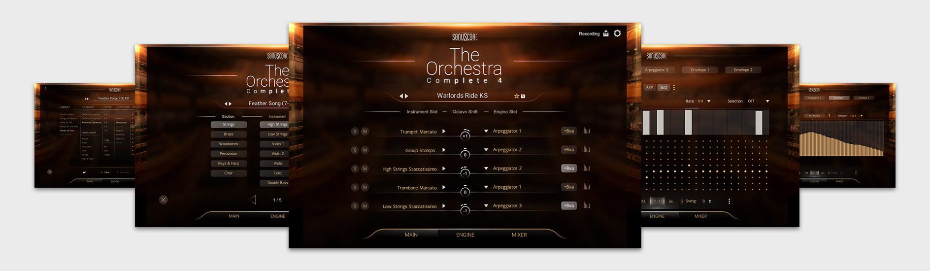 『THE ORCHESTRA COMPLETE 4』の核となるのは、シンプルなコードから豊かなオーケストレーション・アレンジをリアルタイムに生み出す、画期的な「Ensemble Engine」です。『THE ORCHESTRA COMPLETE 4』に演奏済みのフレーズは収録されておらず、搭載されたアルペジエイターやエンベロープにより数多のフレーズを、アンサンブルを生成します。さらに、強化されたキースイッチ・システムにより、1つのプリセットにつき最大4つの異なる楽章セクションを設定できます。また、Add-8va機能により、サウンドにオクターブ上のサウンドを追加し、深みを演出します。前バージョンまでの「Ensemble Engine」が備える直感的なワークフローを変えることなく、さらに柔軟性、創造的な可能性が加えられました。Ensemble Engine を駆使した1,150以上の精巧なアンサンブル・プリセットを有するアンサンブルnki と、楽器 / アーティキュレーション個別のnki 約300種類が用意され、スコアに必要なすべての音色をすぐに利用できます。インスピレーションを頼りにいくつかのコードで楽曲をスケッチする場合でも、各パートを手書きで製作していく場合でも、その制作スタイルにシームレスに適応します。
