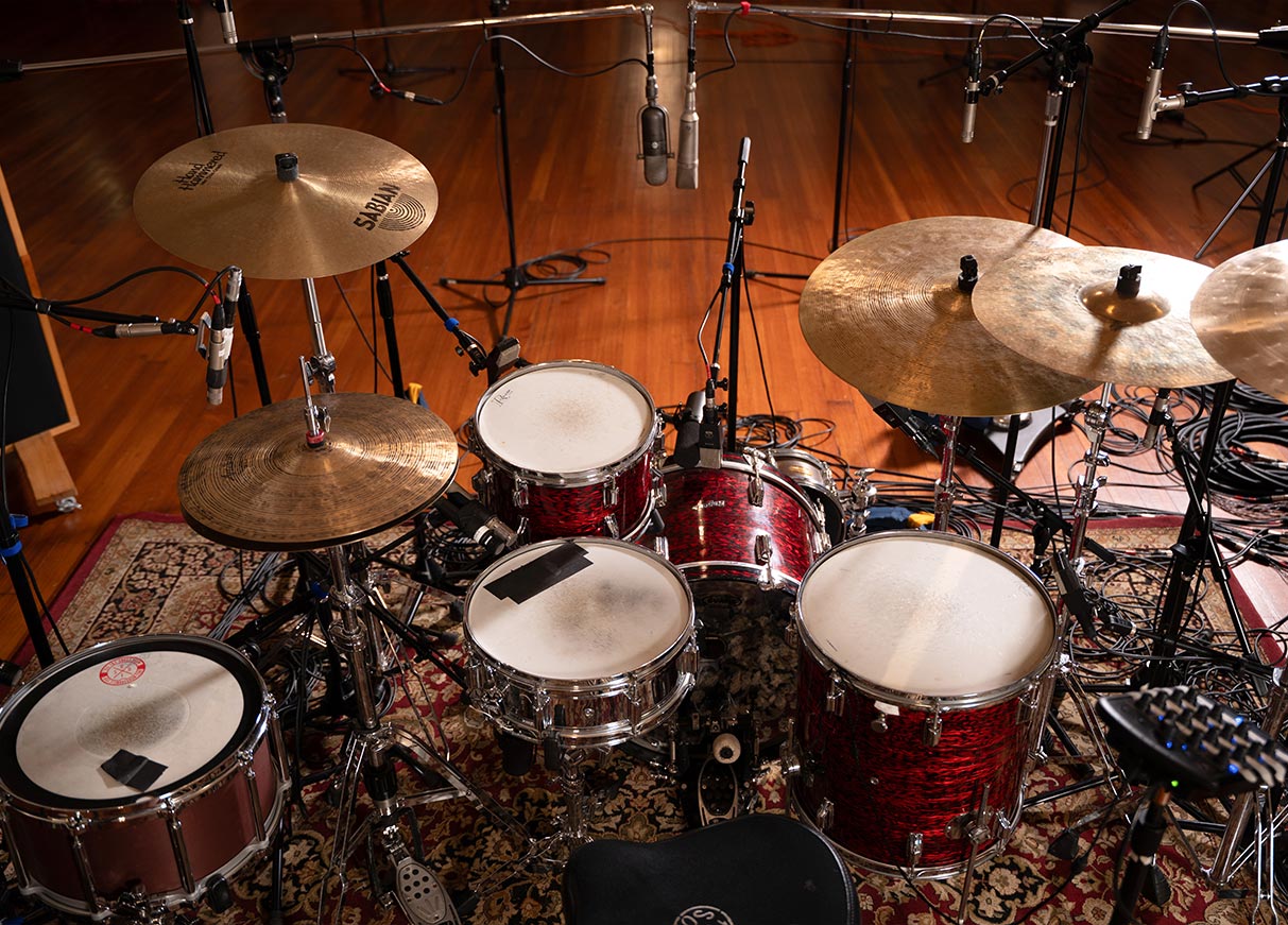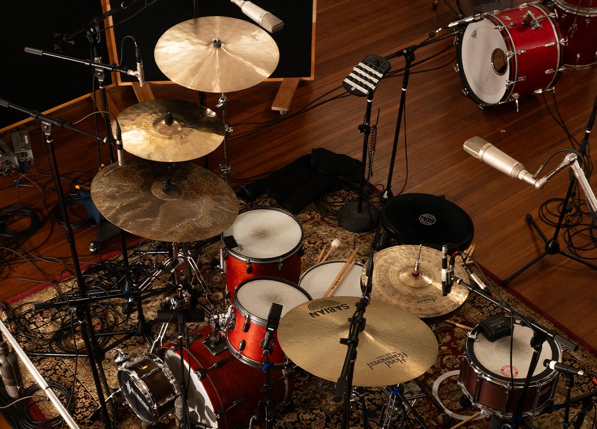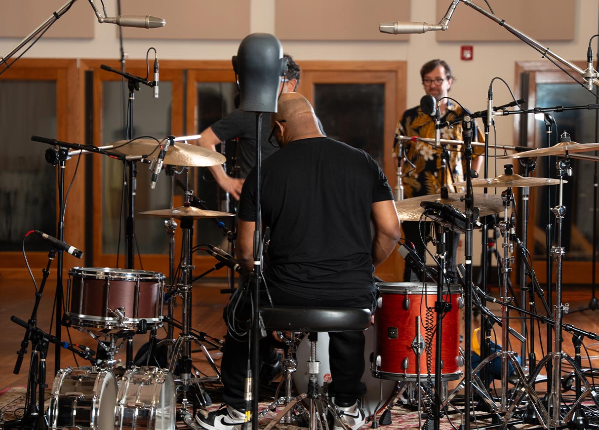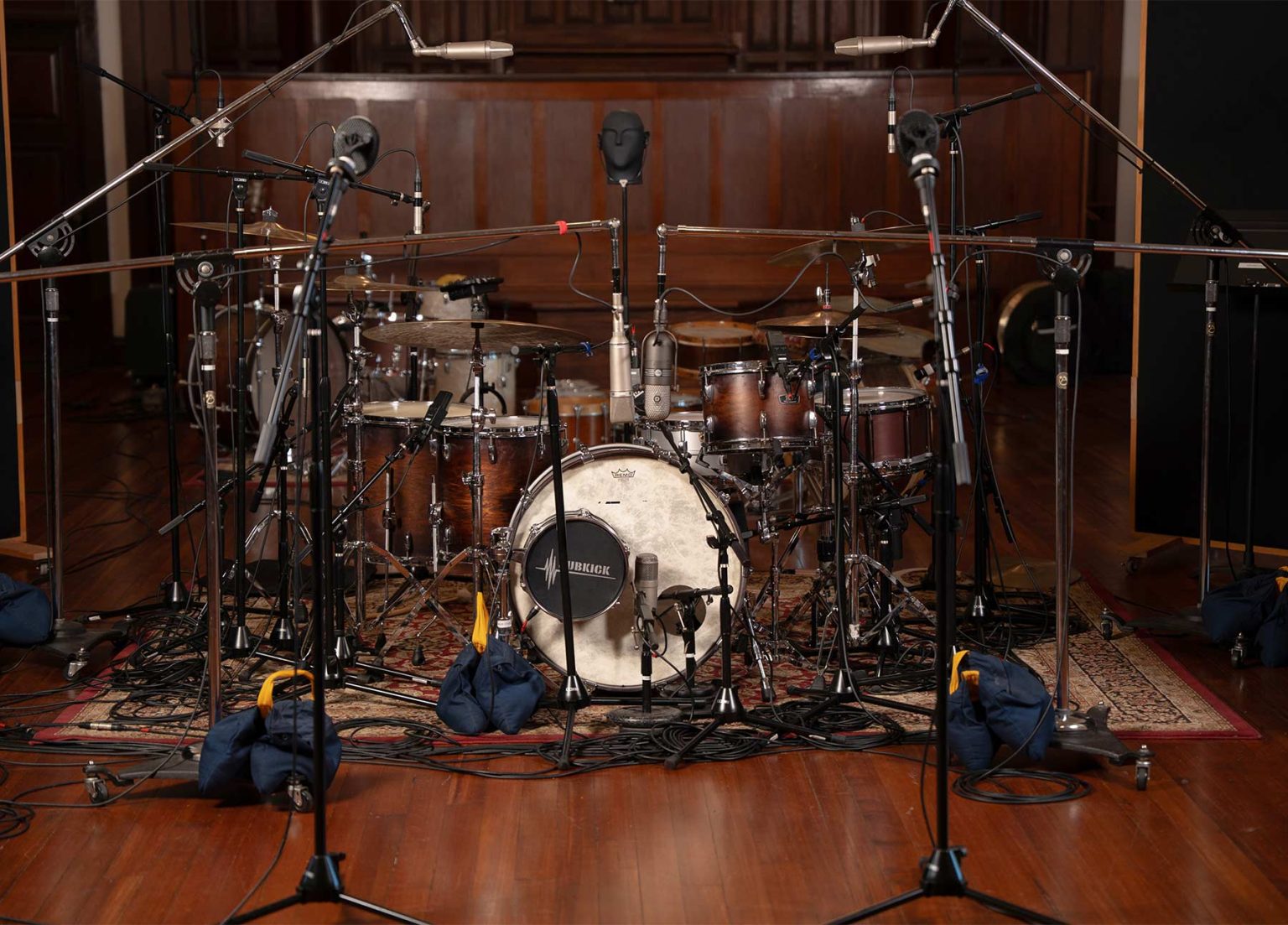 Studio Aのメインルームだけでも315平方メートル(約190畳)の広さと最大8メートルの天井を誇り、その音響はまさに圧倒的です。その一方で本作の収録ではゴボ(遮音板)を用いてドラムを部分的に仕切り、生々しくもタイトなサウンドを実現しました。
