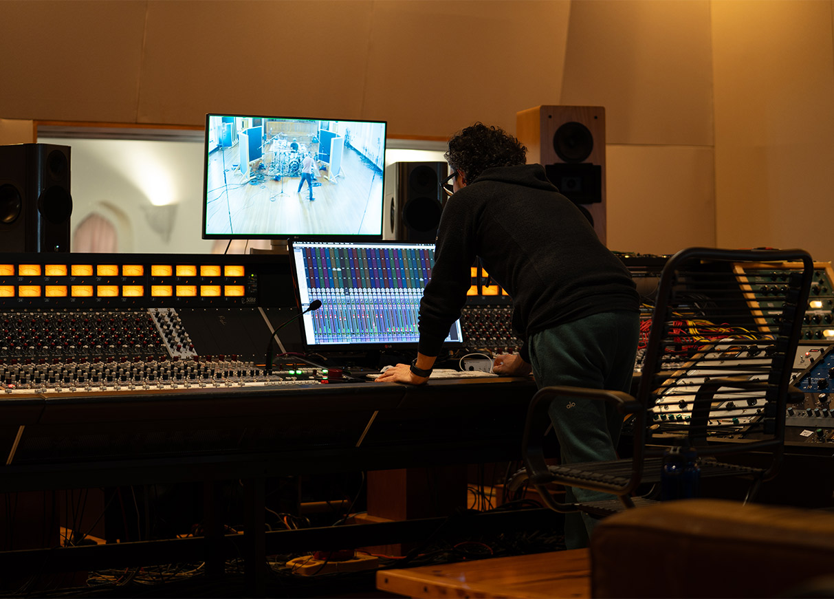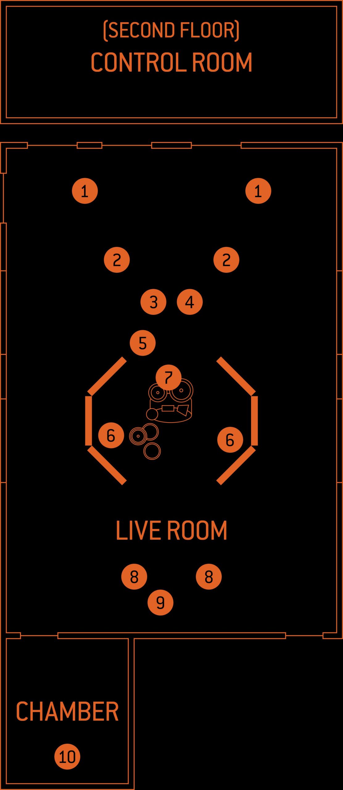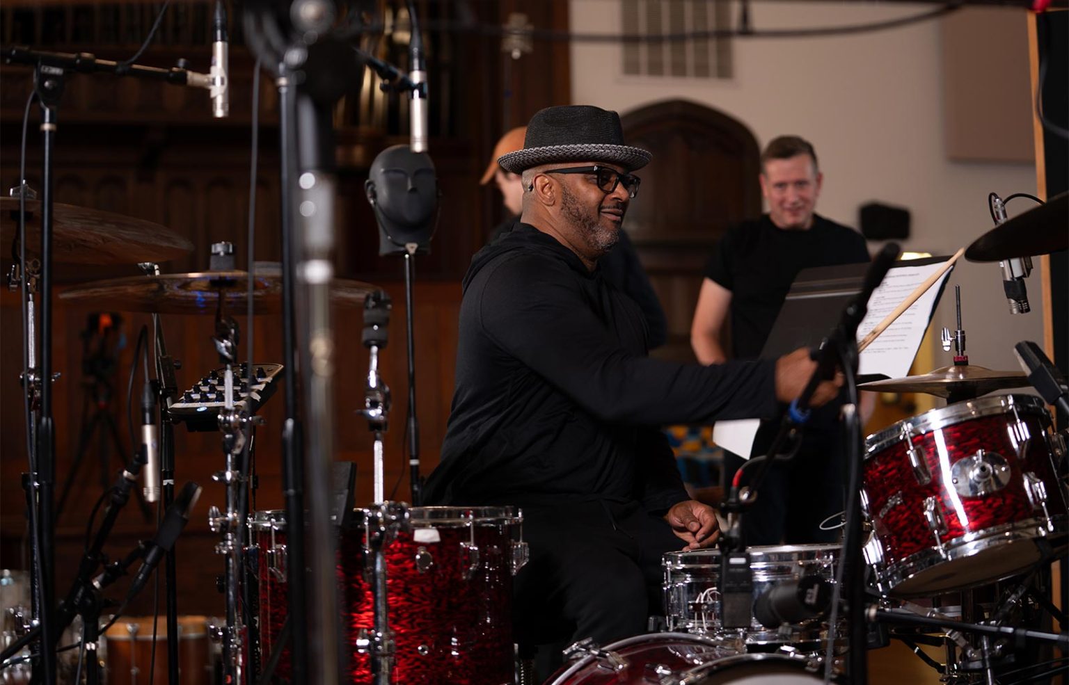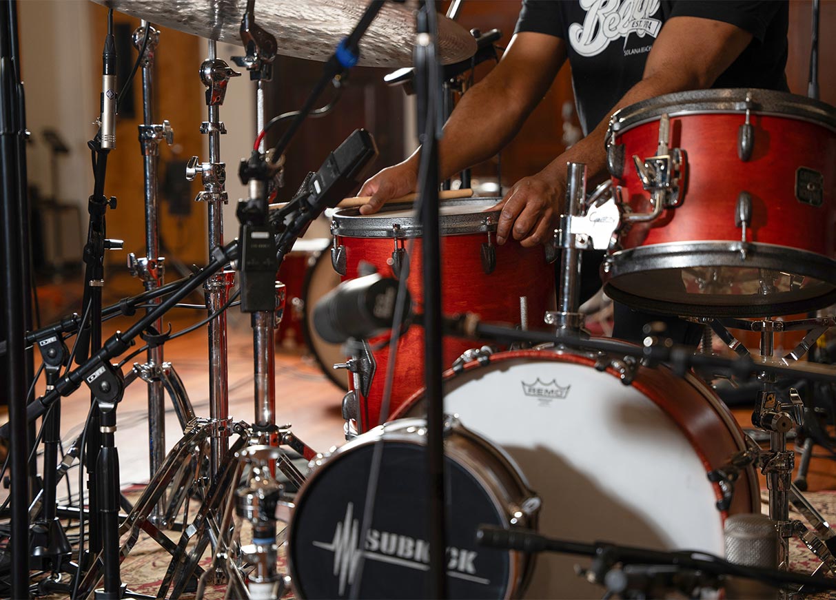 Studio Aのメインルームだけでも315平方メートル(約190畳)の広さと最大8メートルの天井を誇り、その音響はまさに圧倒的です。その一方で本作の収録ではゴボ(遮音板)を用いてドラムを部分的に仕切り、生々しくもタイトなサウンドを実現しました。