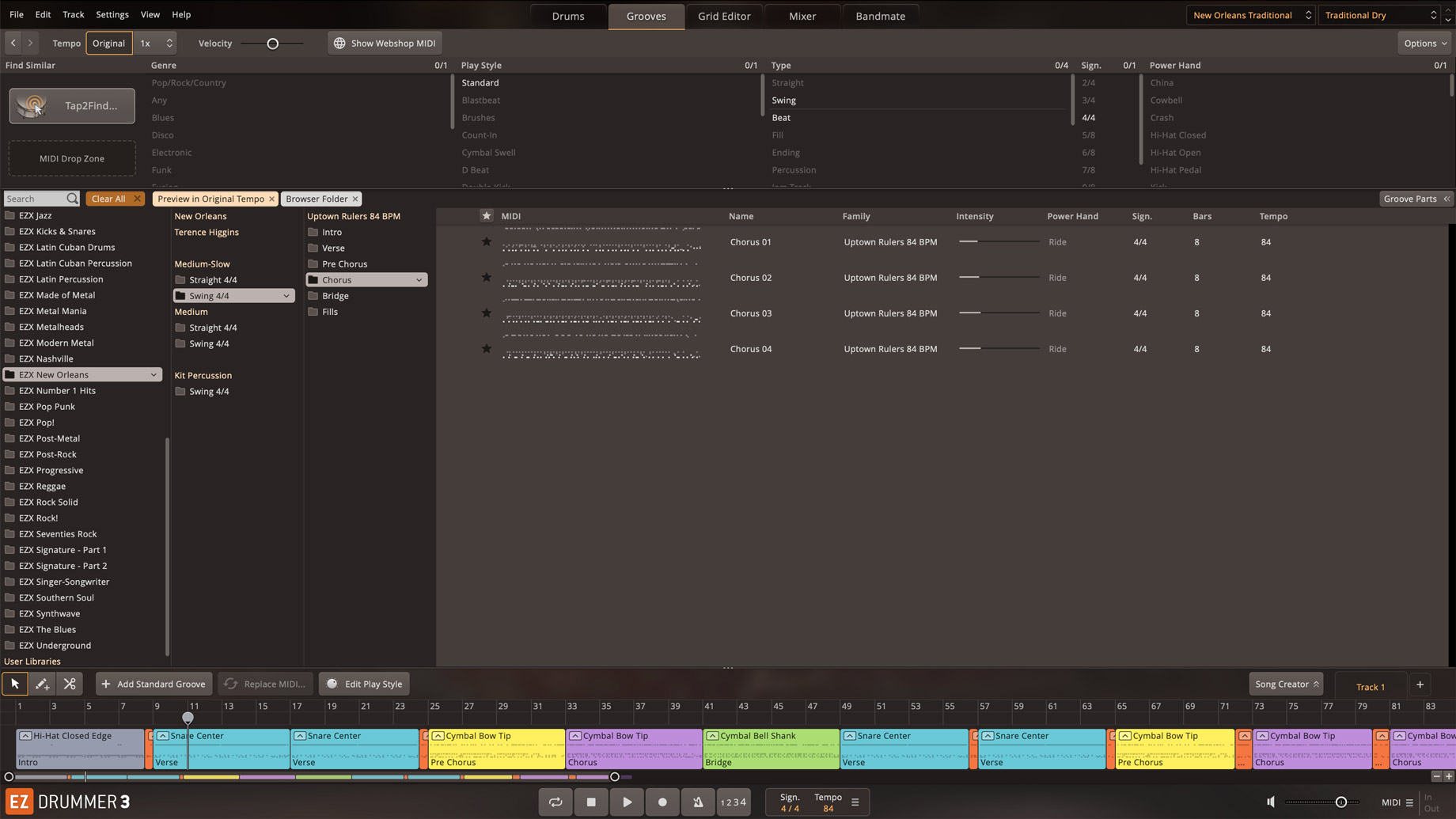さらに Misha によるミックス済みプリセットや、Terence 自身が演奏したニューオーリンズらしいグルーヴやフィルを収録したMIDIライブラリも付属しています。伝統的なジャズからストリートビート、セカンドライン風のグルーヴまで、すぐに制作を始められます。