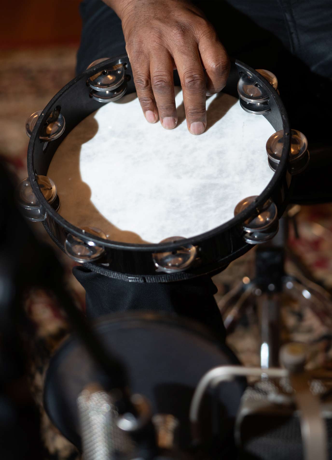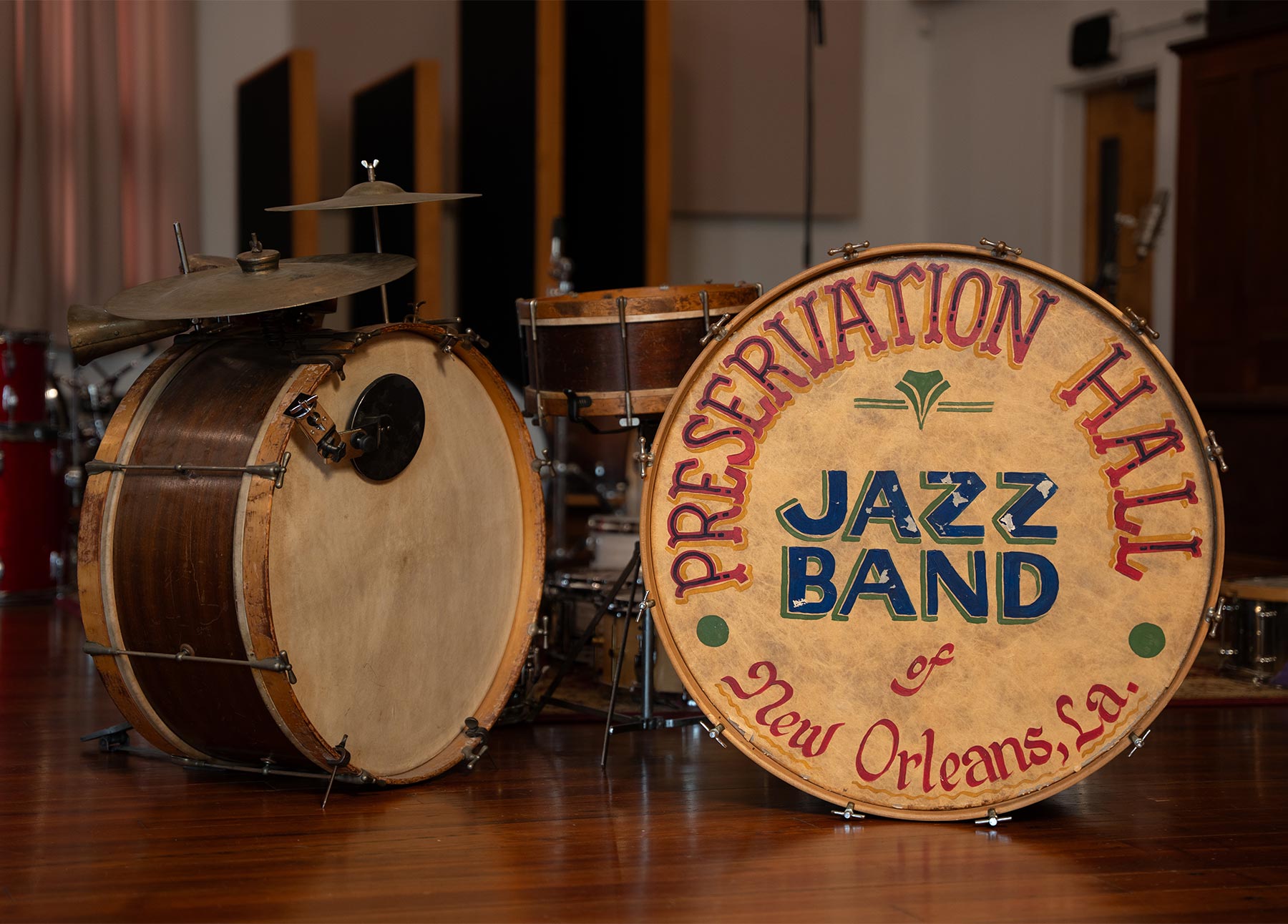 さらに著名なジャズのコンサート・ホールであるプリザベーション・ホールで実際に使用されたバスドラム、パレードスネアなどの希少なスネア、ウォッシュボード、カウベル2種、ボトル、パンデイロ、金属と木材を組み合わせた手作りの“ジャンク”ハイハットといったニューオーリンズの系譜を象徴する打楽器類も網羅しています。 -