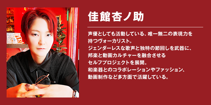 歌手・声優「佳館杏ノ助」の声を元に制作した、表情豊かなアーティキュレーションを持つSynthesizer V 2専用歌声データベース