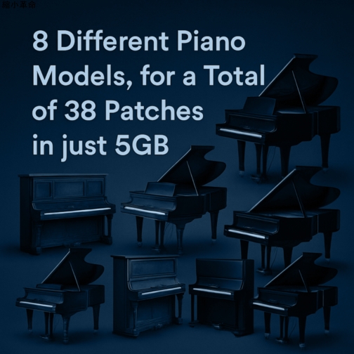 8種類の異なるピアノモデル、わずか5 GBで合計38パッチを収録
