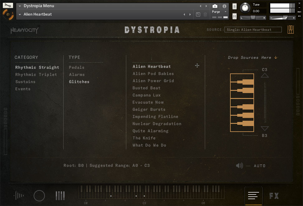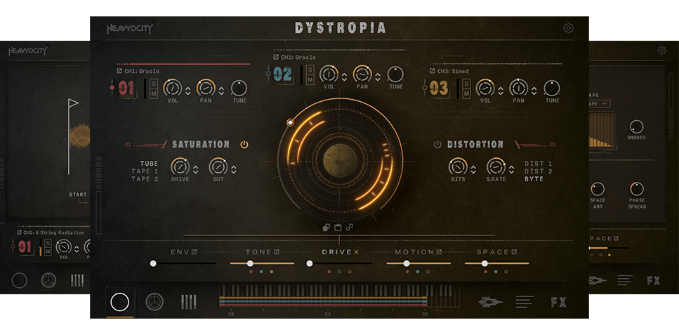 Heavyocityのサウンドデザインの専門知識と、独自の数々のアナログシンセ、録音、楽器を組み合わせ、実験的なプロセッシングを通して歪ませることで、Dystropiaは、音楽とサウンドデザインが融合した比類のない個性を、あなたの指先にもたらします。