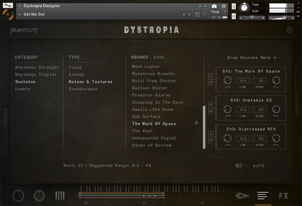 72種類のトーナルおよびアトナル・パッドを組み合わせて、暗闇と荒廃に打ちのめされた音響世界を創造します。36種類のノイズ、テクスチャ、サウンドスケープソースから、ざらざらしたテクスチャ要素とサウンドスケープのユニークなレイヤーを追加し、真にゾッとさせるアンビエンスを作成します。