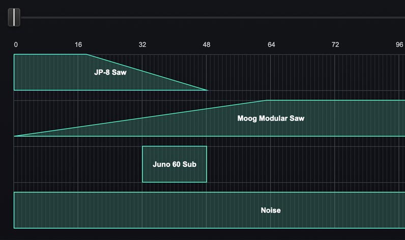 フューチャリスティックなサウンドデザインの素となる、スウィープ可能な新規ウェーブテーブルを幅広く追加。
