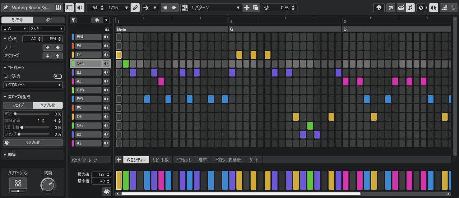 Cubase 14 で搭載されたパターンエディターに新たにメロディックモードが搭載。