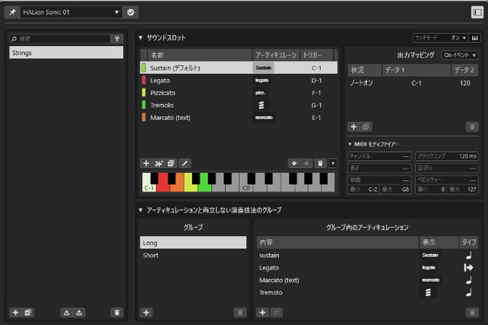 キースイッチやCCでの奏法制御がより細かく行えるようになり、奏法ごとの発音タイミングやキースイッチの反映タイミングを個別に調整可能です。