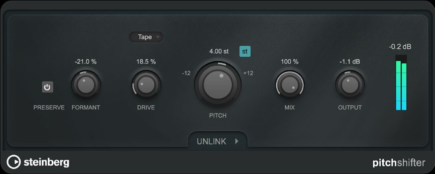 自然な音圧感を実現するオートゲインに加え、トランジェントやクリップ防止機能、EQなどを備えたダイナミックプロセッサー「Ultra Shaper」と、リアルタイムでのピッチシフトが可能な「Pitch Shifter」が新エフェクトとして追加されました。