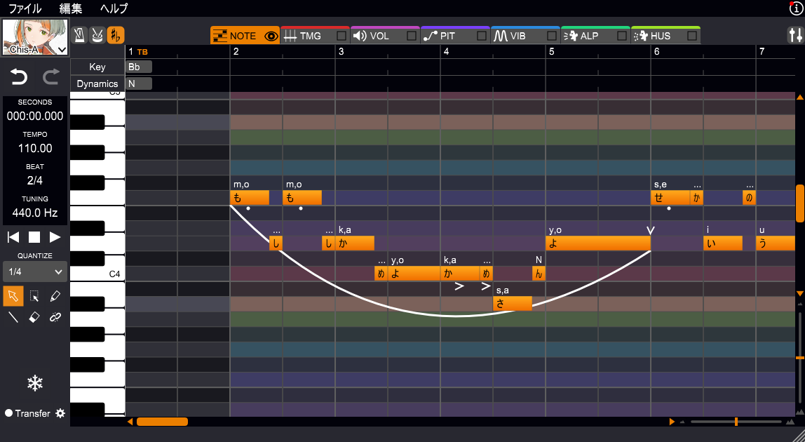 ピアノロールに音符を入力し、歌詞を割り当てるだけで、驚くほど自然な歌声を奏でることができます。