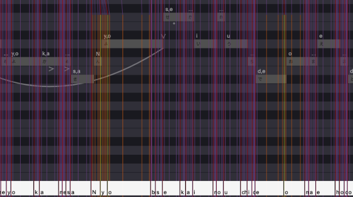 母音の脱落や裏声も歌詞に記号を入れることで簡単に再現でき、英語の歌詞も英語のまま入力できます。
