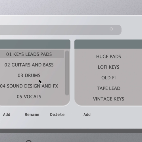「Player」セクションは、レコード、デジタル、ビットクラッシュ、テープ、カセットなど、実在する再生デバイスを模倣しています。各モデルが独自の特性を持っており、擦り切れたカセットの再現から、レコードの埃っぽい質感の付加まで、リッチで使い込まれた深みをサウンドに与えます。