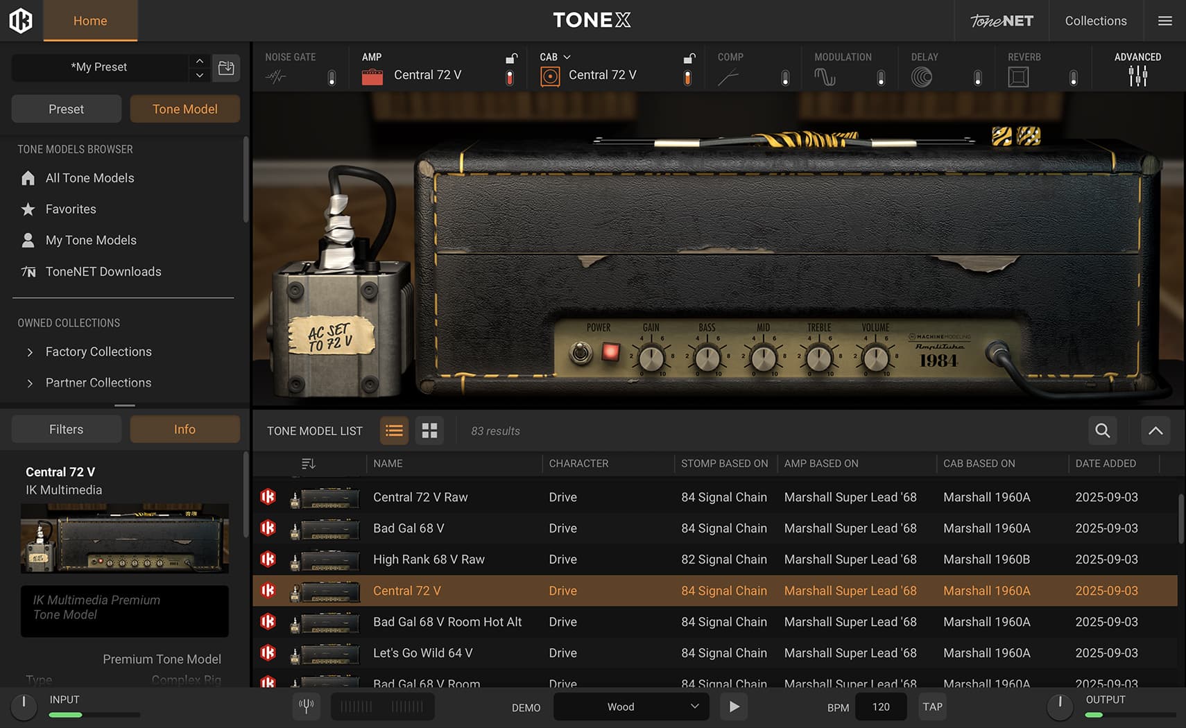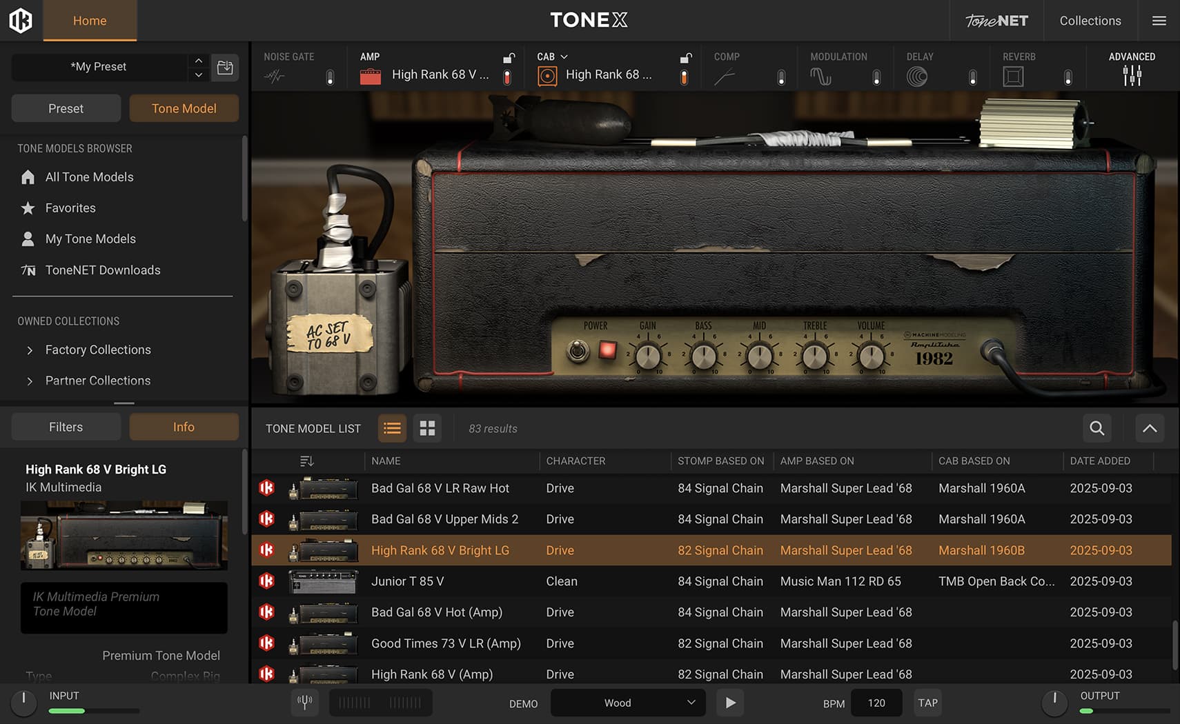 本コレクションには、ライブで実際のキャビネットやお気に入りの IR と組み合わせて使用できるアンプ単体のキャプチャーを含む、83種類のTone Modelが丁寧に収録されています。