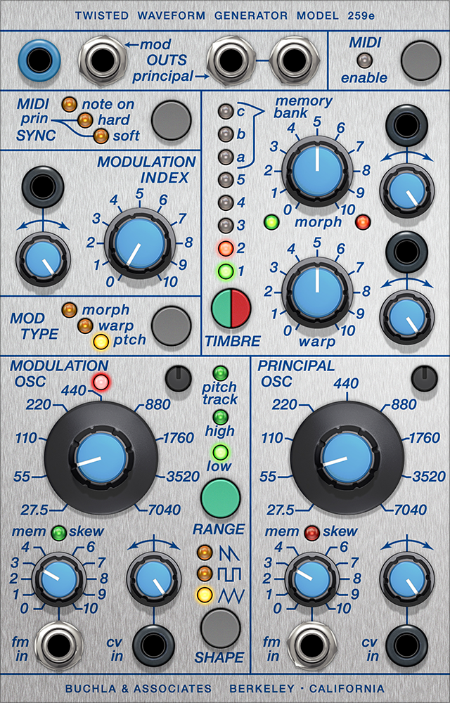 Buchla 259eを使えば、強烈にツイストすることができます。誰もが待ち望んでいたこのデュアル・オシレーター・モジュールは、Buchla社初の公認プラグイン・バージョンです。