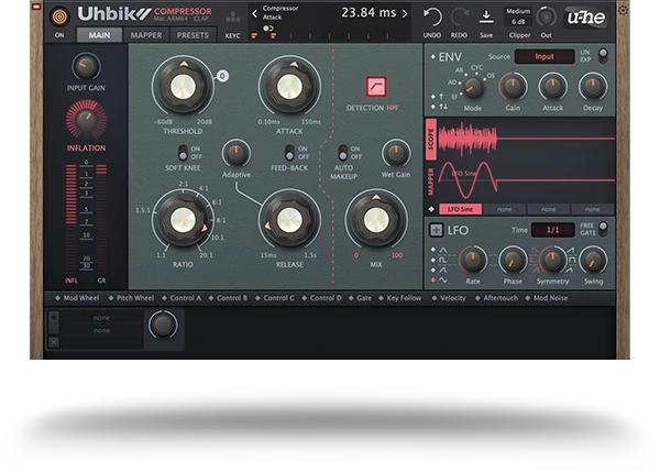 - 通常のコンプレッションに加え、音の密度を持ち上げるInflation機能を搭載