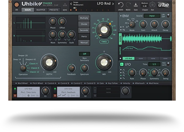 わずかな調整で、Uhbik Phaserはまるでメタル・モンスターのように変貌します。オリジナル信号には存在しない新たな倍音や周波数成分を生成し、サウンドに圧倒的な存在感をもたらします。
