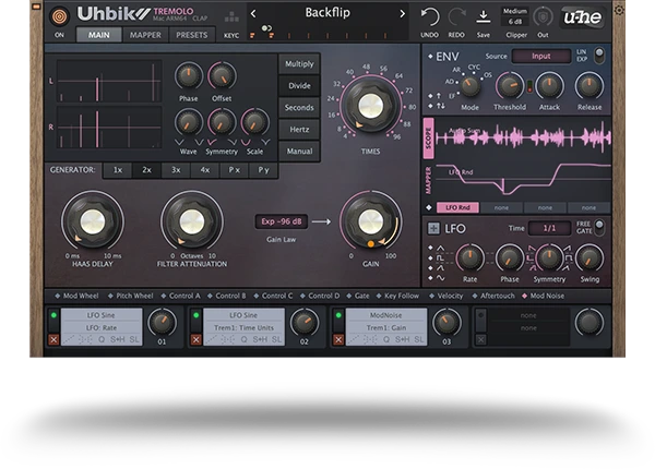 トレモロは本来、音量を周期的に変化させるシンプルなエフェクトですが、Uhbik Tremoloはその枠を超え、リズムと空間を自在に操るクリエイティブ・トレモロ・ツールへと進化しました。