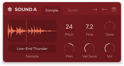 - 4つのレイヤーをブレンド: 強力なクアッド・エンジンを使用して、サンプルやシンセを4層に重ねることができます。
