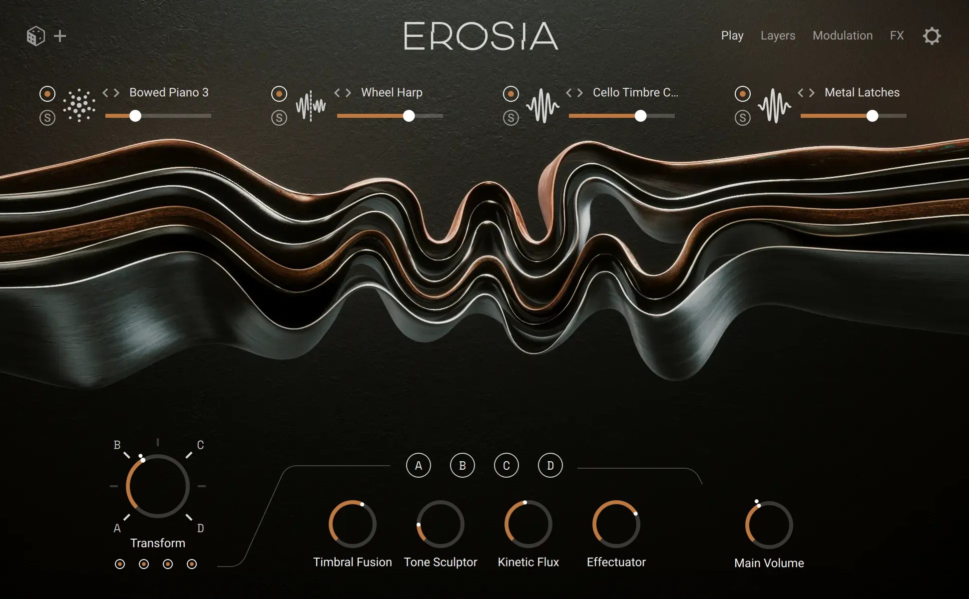 Erosiaは、素材の摩擦と共鳴から生まれる音をテーマにした、シネマティック・サウンドデザイン用インストゥルメント。