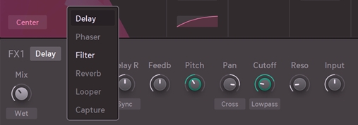 ディレイやリバーブを使用すれば、空間の広がりや奥行きを自在に形成可能。フェイザーによるモジュレーション効果に加え、ドライブセクションを備えたフィルターは、トーン・シェイピングのためのクラシックかつ強力なツールとなります。