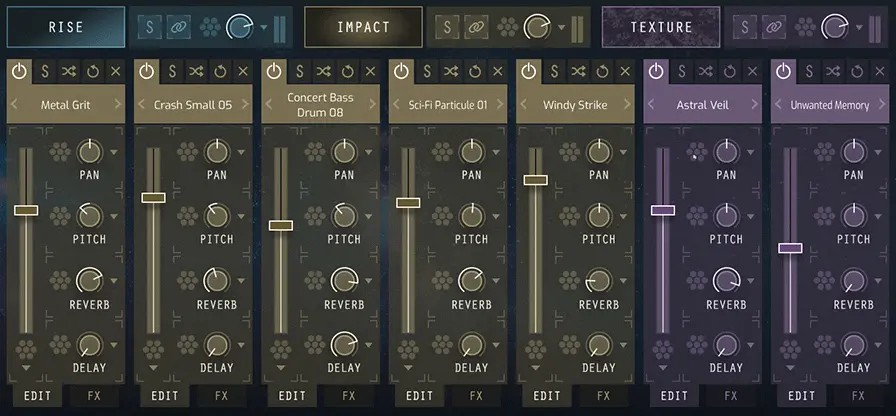 - 1,800以上のレイヤーと700以上のクリエイティブなプリセットによる、膨大なシネマティック・サウンドライブラリー