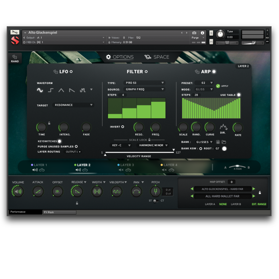 ダイナミック・レイヤーとラウンドロビンにより、自然でダイナミックな演奏を実現します。また、クラシックなトイ・グロッケンシュピールも収録されています。