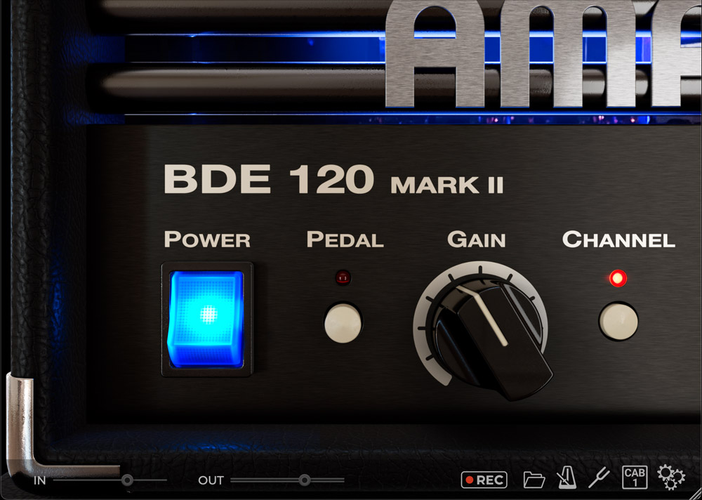 『AMPKNOB - BDE 120』のサウンドは、アンプを鳴らしただけのサウンドではありません。プロデューサーのJens Bogrenが自らセットアップした2種類のスピーカー・キャビネットやマイク、シグナル・チェーンをもって、ミックスに即座に溶け込むよう設計された「使える」サウンドに仕上げられています。シンプルなワンノブ・コントールによるゲイン調整を中心に、搭載されている2段階のゲイン・チャンネル切替えと、タイトなブーストペダルのON/OFFによって、サウンドのバリエーションを生み出します。