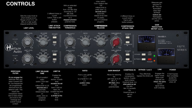完全ディスクリートのクラスAトポロジー、各チャンネルに3つのCarnhill St Ivesトランスを搭載、そしてコンプレッサーとリミッターの両方に「ファストアタック・モード」を追加。