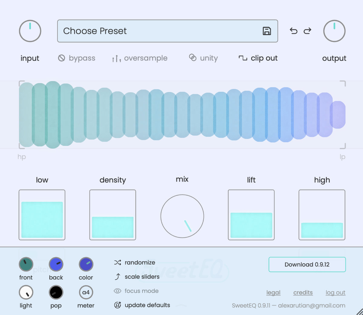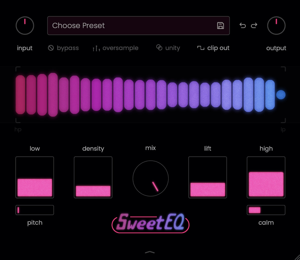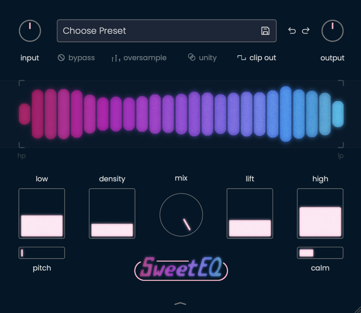 - 中高域:中域のクリアさを自然に引き上げる「lift」パラメーター。ミックス内で音がしっかりと前に出ます。