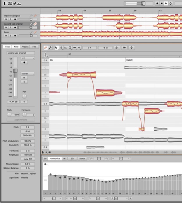 また、Melodyneでは、これらすべてを直感的に編集できます。ボーカルだけでなく、ピアノやギターといったポリフォニック楽器を含むあらゆる種類の楽器やインストゥルメントを扱えます。