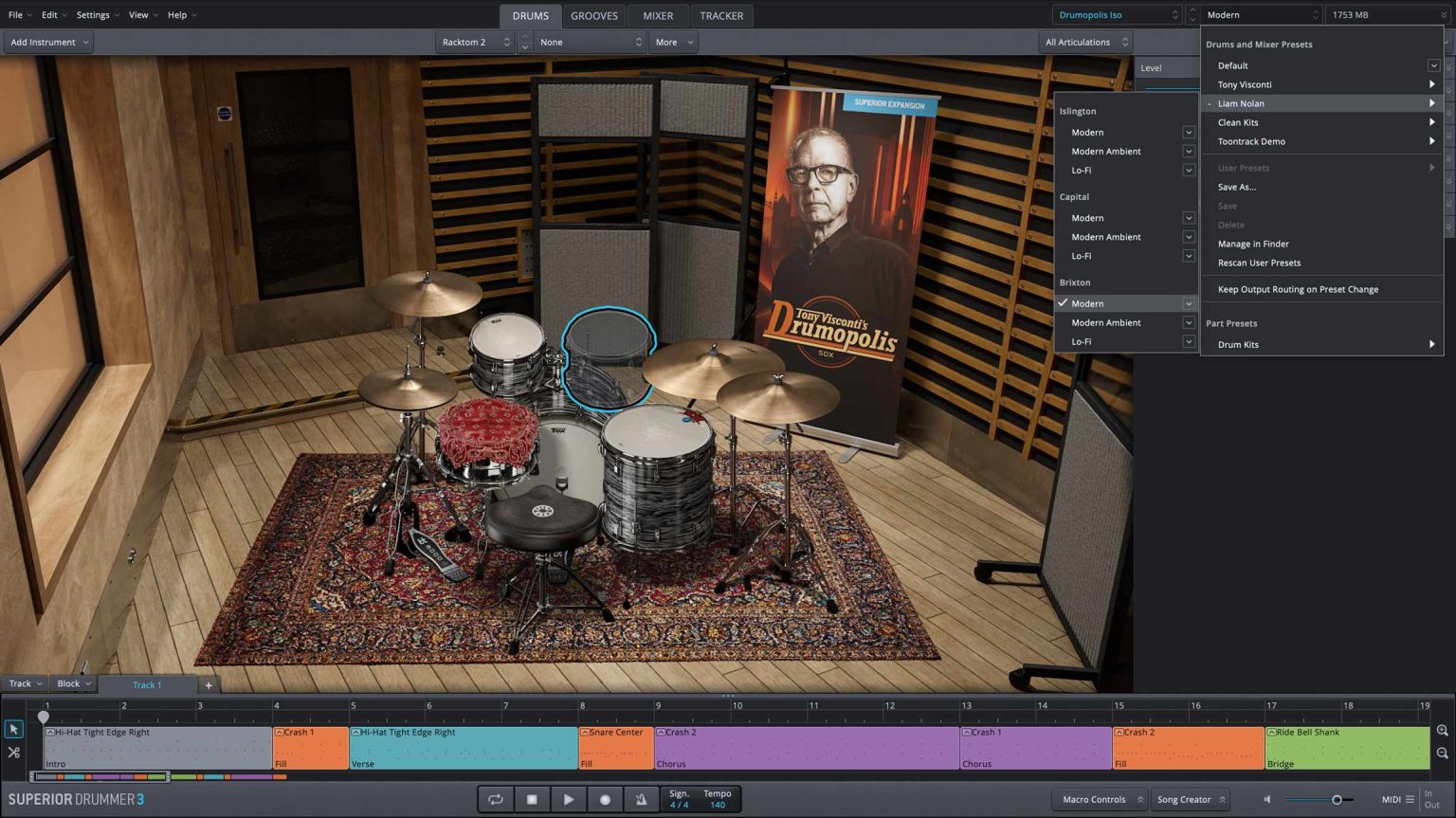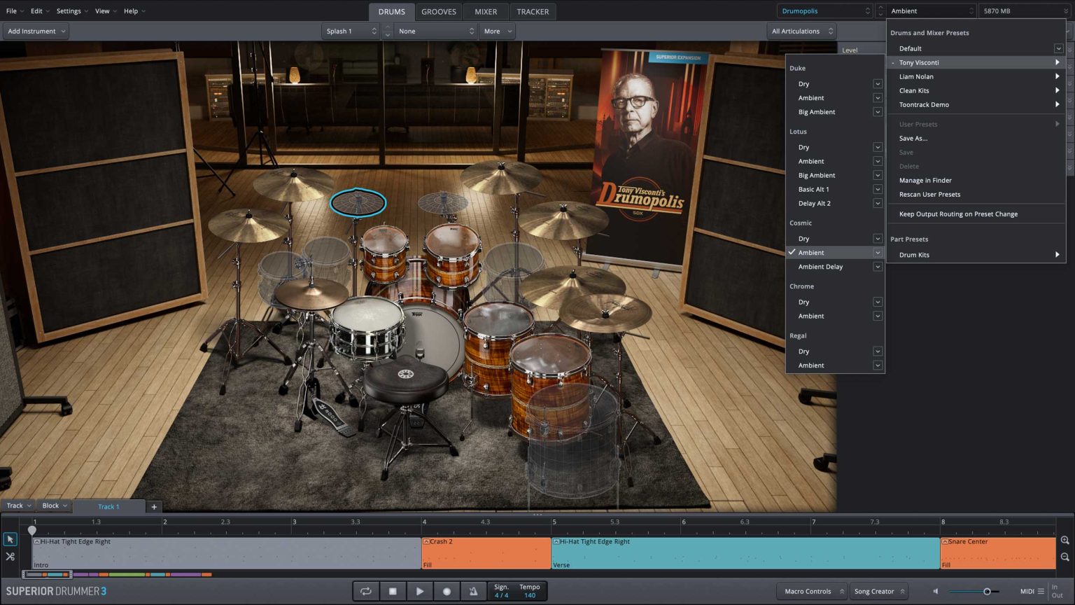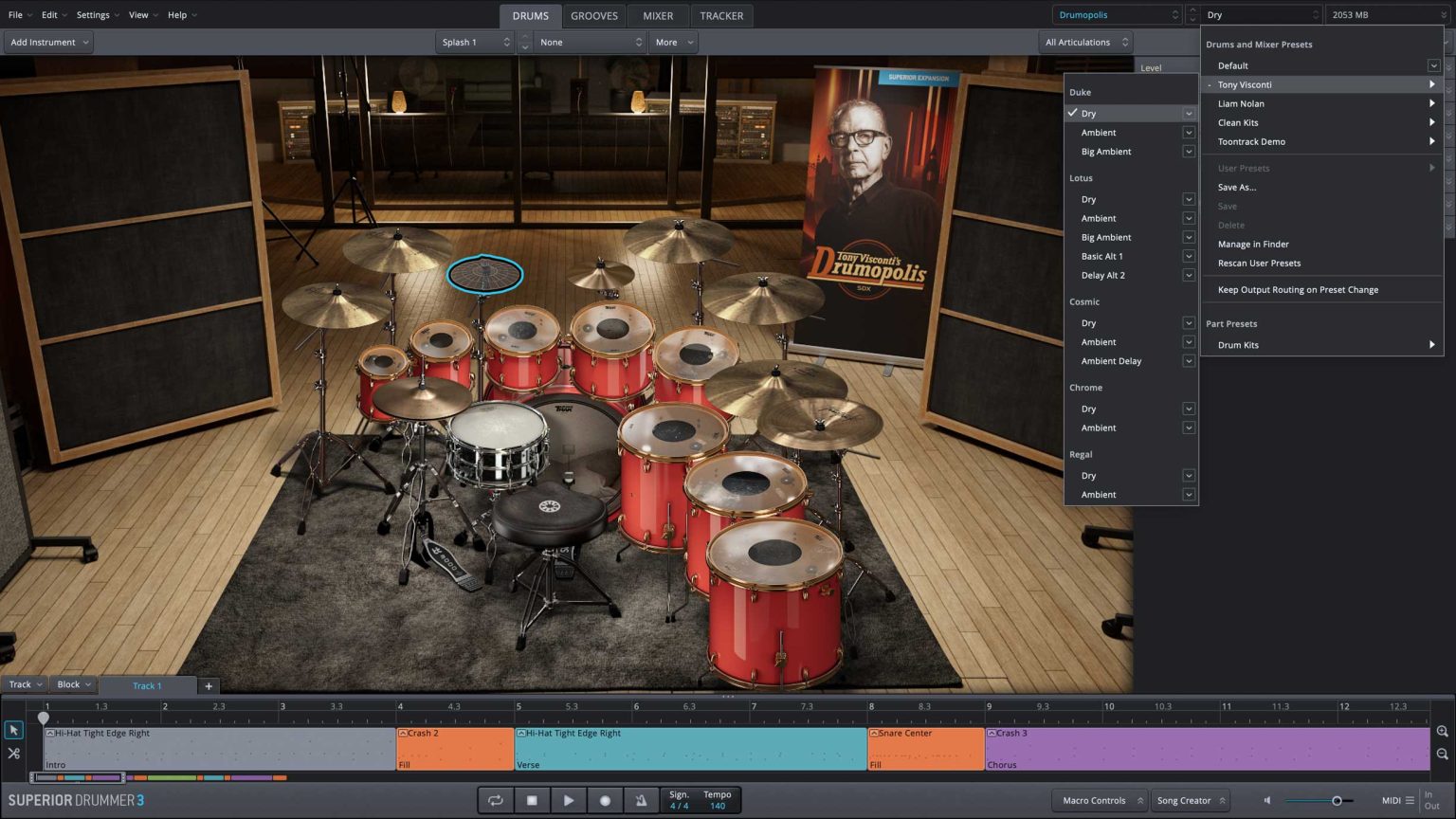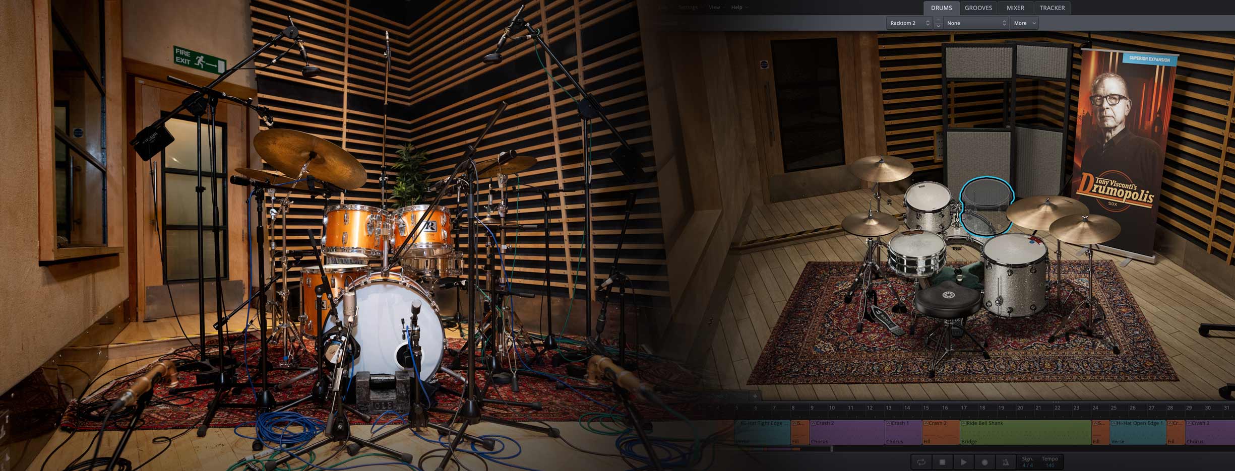 『SDX - Drumopolis』は伝説的プロデューサー Tony Visconti によってレコーディングされた8つのキットを含んだSuperior Drummer 3専用の拡張音源です。