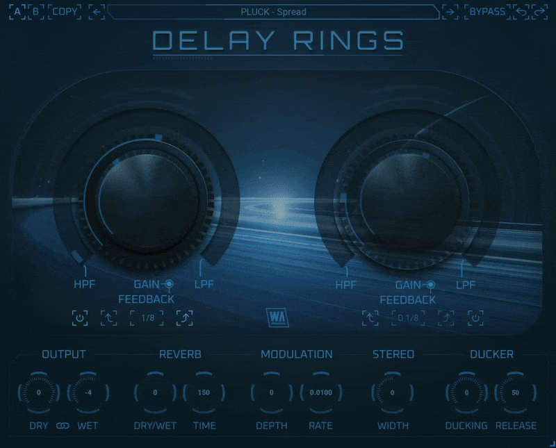 『Delay Rings』はステレオ・フィールド内を円を描くように脈動し移動する2つの独立したディレイ・エンジンを中心に構成されており、驚異的なディレイ・シーケンスを生み出します。