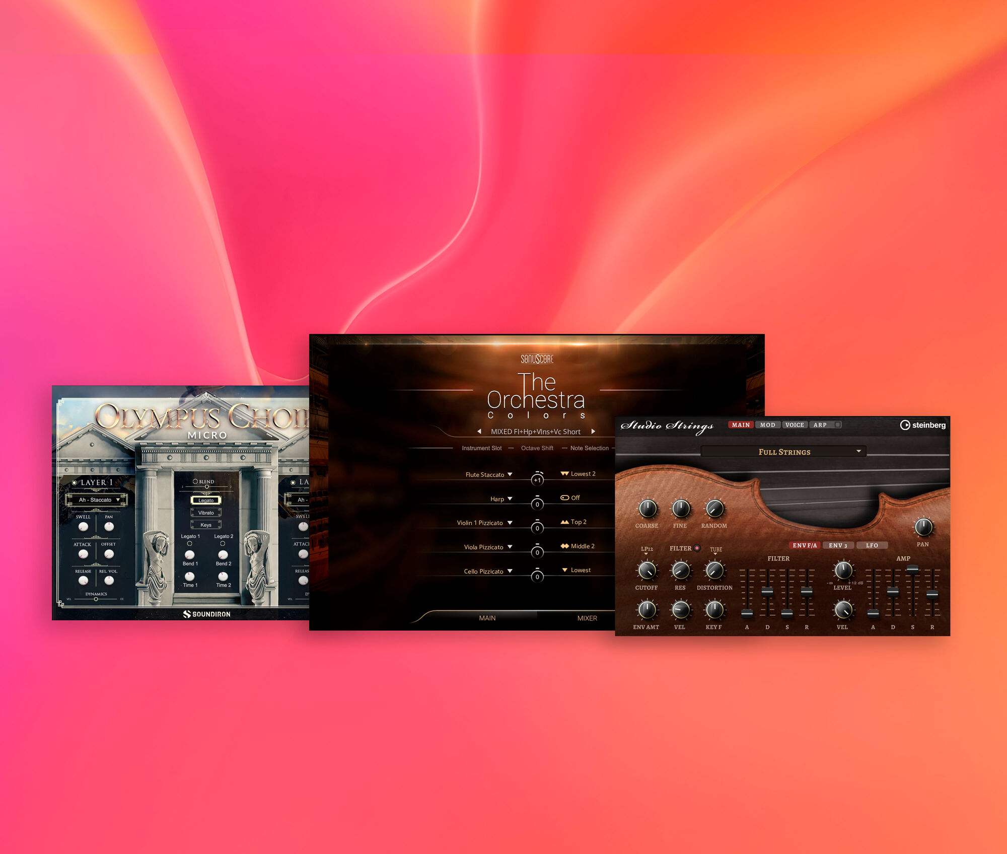 重厚な音色の「The Orchestra: Colors」やリアルな「Studio Strings」、聖歌隊をシンプルに扱える「Olympus Choir」など、シネマチックで輝きのあるサウンドトラックのための音源も充実しています。