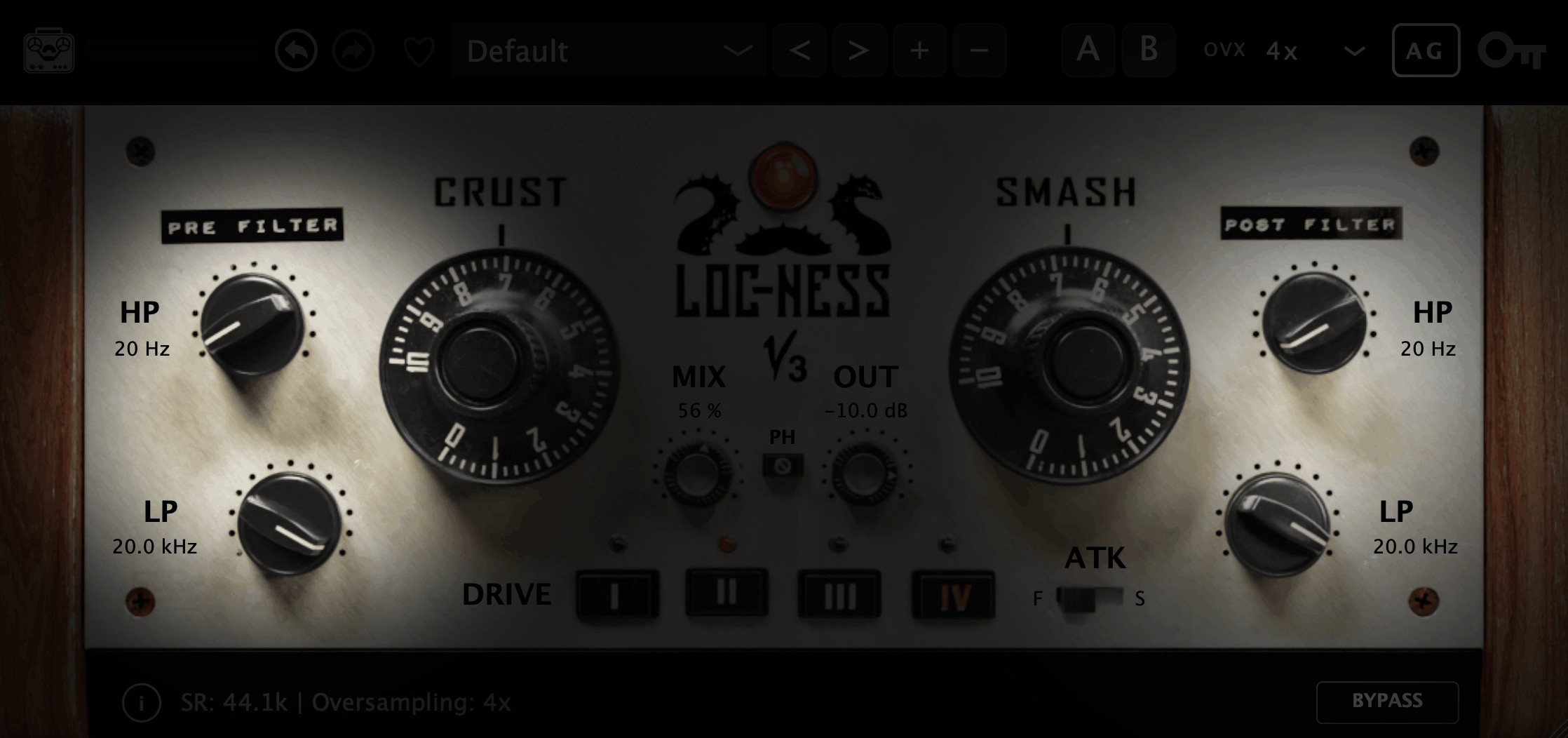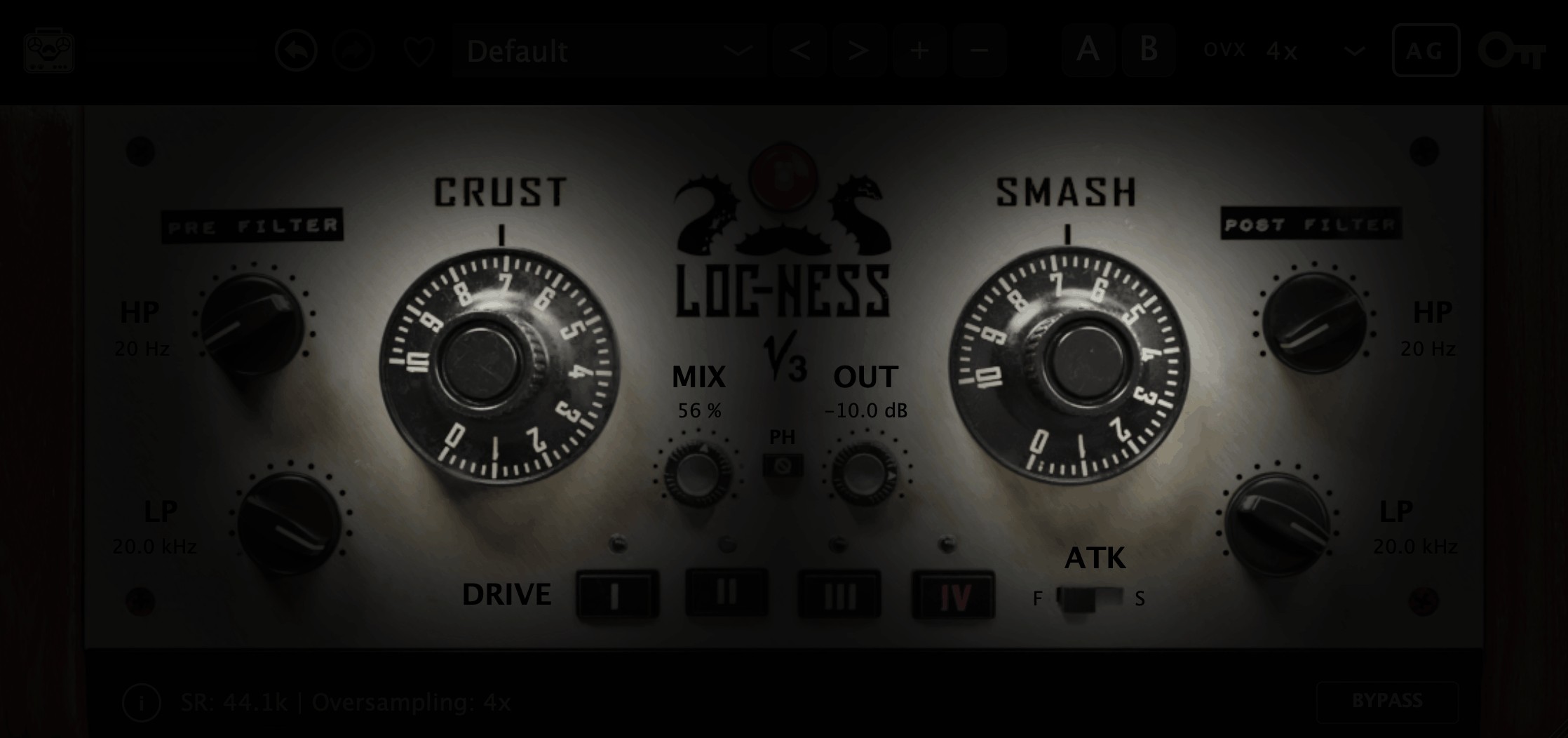 - Autogain:CrustやSmashを強くかけても出力レベルを自動で補正します。