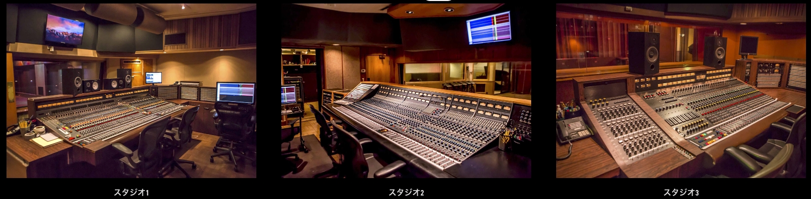 - Studio 1、3には、吸音状態を変化させる Variable Acoustic Dampening Modeling(可変アコースティック・ダンピング・モデリング)技術を使用