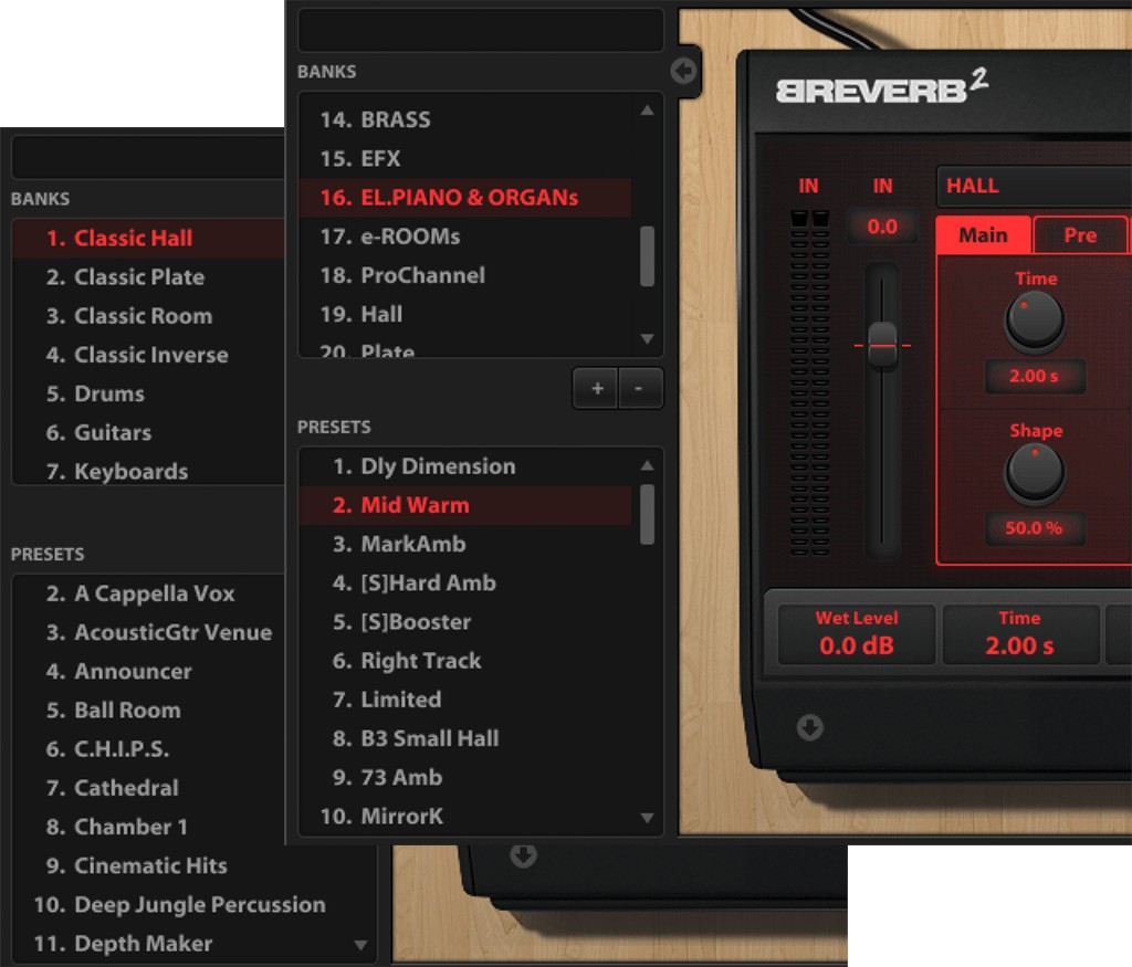最適なルームサウンドを探すのに、何十種類ものリバーブプラグインをあれこれ試す時間はもう必要ありません。BREVERB 2なら、ワンクリックで理想のサウンドを見つけられます。