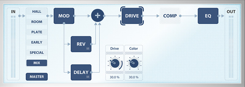 REmatrixは、IRのダイナミクスと躍動感を高めるためのエフェクトチェーンを統合しています。