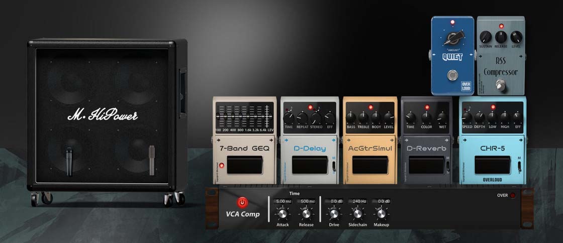 コンプレッサー2個、ディレイ/リバーブエフェクト2個、モジュレーションペダル1個、グラフィックEQペダル、ノイズリダクター、ディレイペダル、リバーブペダル、アコースティックシミュレーター、および追加キャビネット1個。
