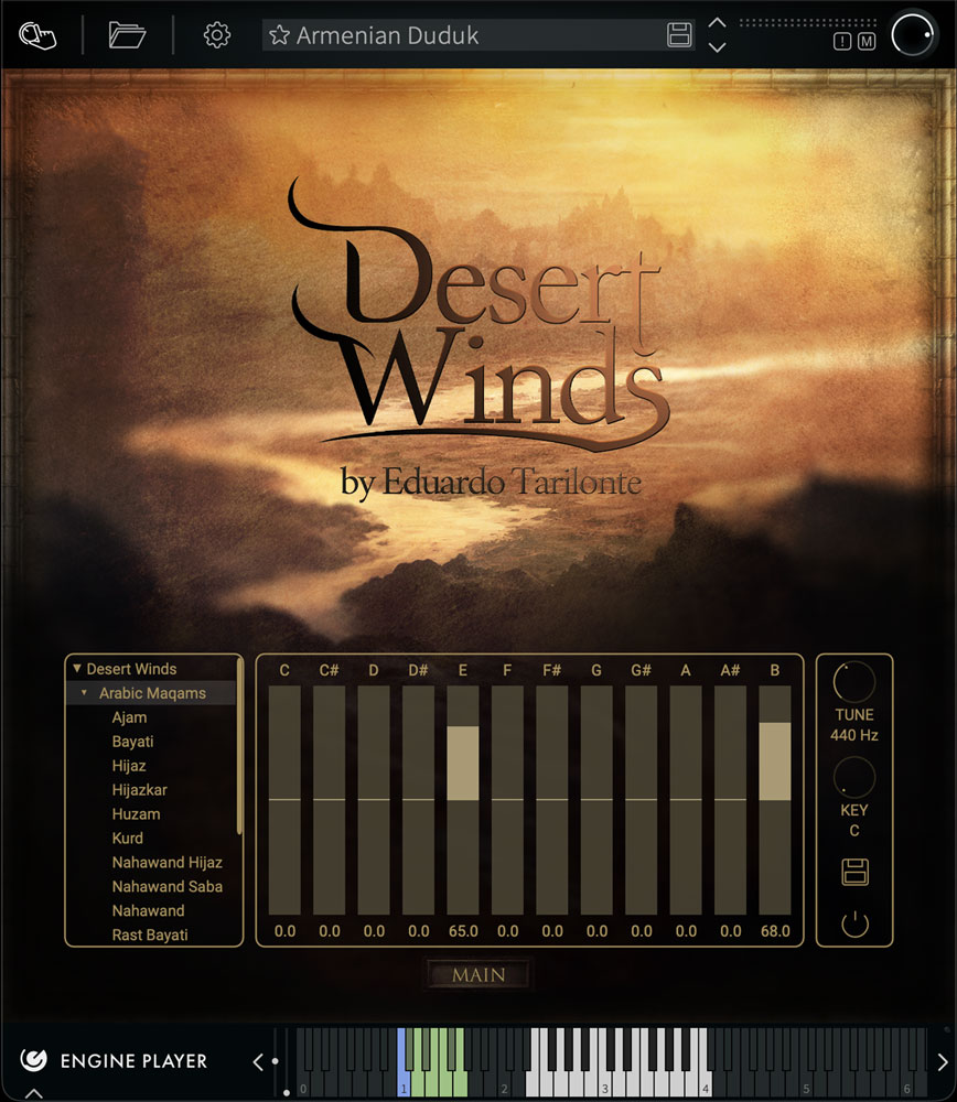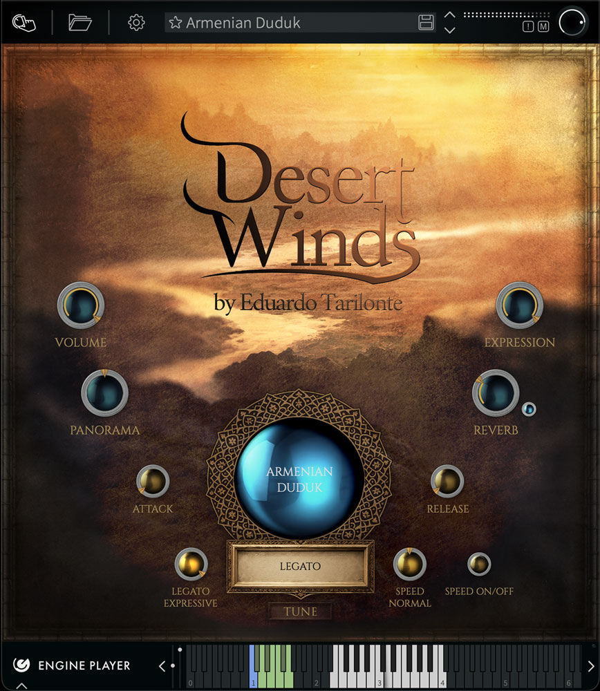 アルメニアのドゥドゥク、ペルシャ / トルコのネイ、そしてズルナという4つの木管楽器が収録されています。これらの楽器の特徴であり習得が大変難しくもあるレガートをはじめ、ビブラート、トリルなど多数のアーティキュレーションをベロシティやキースイッチでリアルタイムに切り替え演奏が可能です。特に、レガートは実際のレガート演奏をサンプリングしたサンプルを使用しているため、とても滑らかなフレージングを実現。最高で6 種類のレガート・タイプを使い分けることが出来ます。またMicrotuning モジュールによって、地域特有の音階や調律も再現が可能。滑らかで表現力豊かな演奏により、物語を描きます。