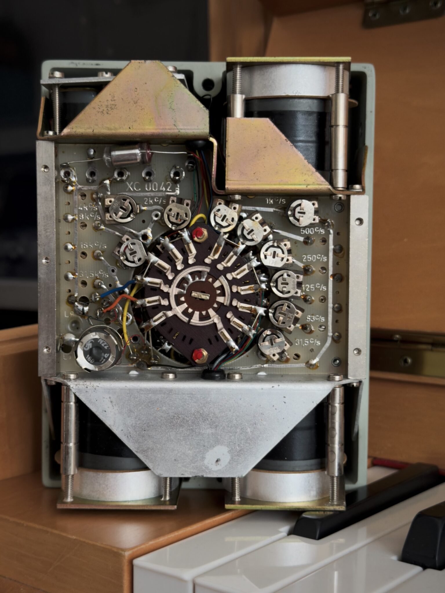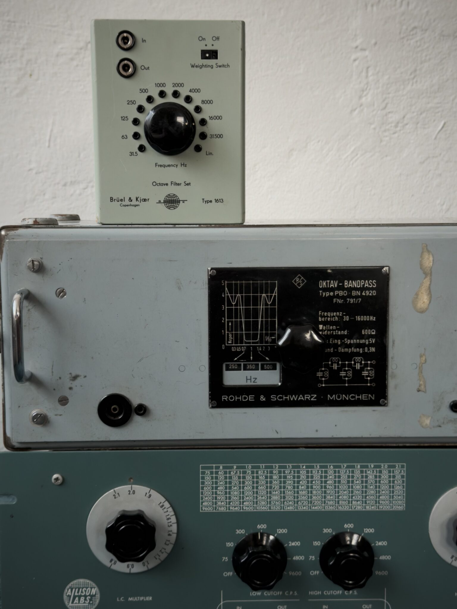 パッシブ・バンドパス・フィルターは音響研究機器の中でも重量のある部類に入ります。電力を使用しないため、フィルタリングはすべて、各周波数帯域ごとに巻かれた巨大な金属コイルによって実現されています。帯域数が多いため小型の機種でもかなりの重量になります。