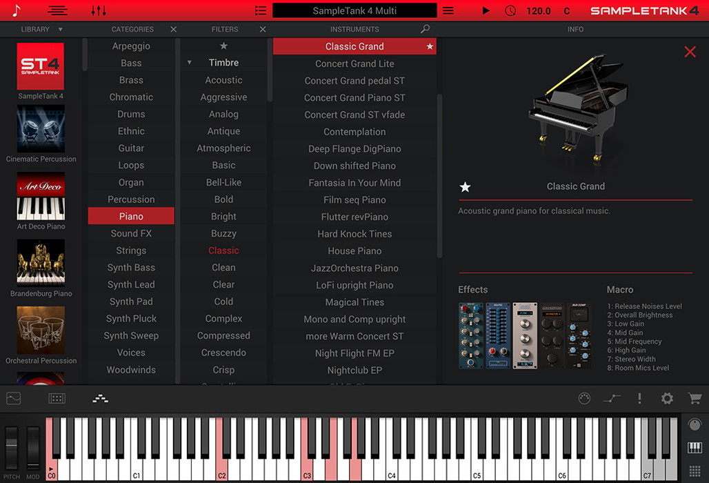 また、合計36種すべての SampleTank 4/3拡張音源も網羅。プリセットは8,000種類、サンプル容量は250GBに達し、SampleTank 4 MAXだけで、ほとんどの音楽ジャンルに対応できます。