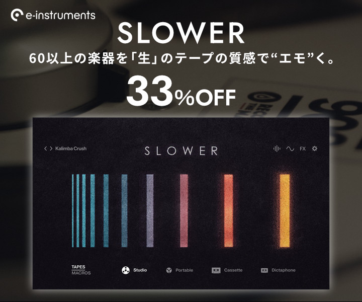 テープマシンの「生」の質感を捉えたソフト音源。e-instruments『SLOWER』33%OFF!
