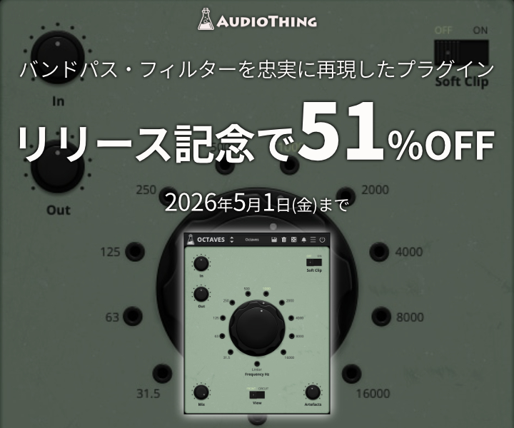 【AudioThing】バンドパス・フィルター『Octaves』がリリース記念で51%OFF!